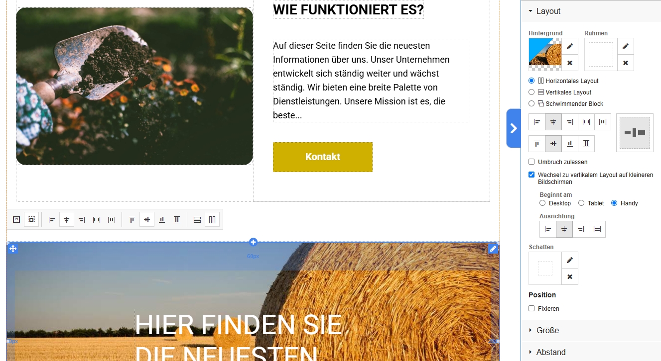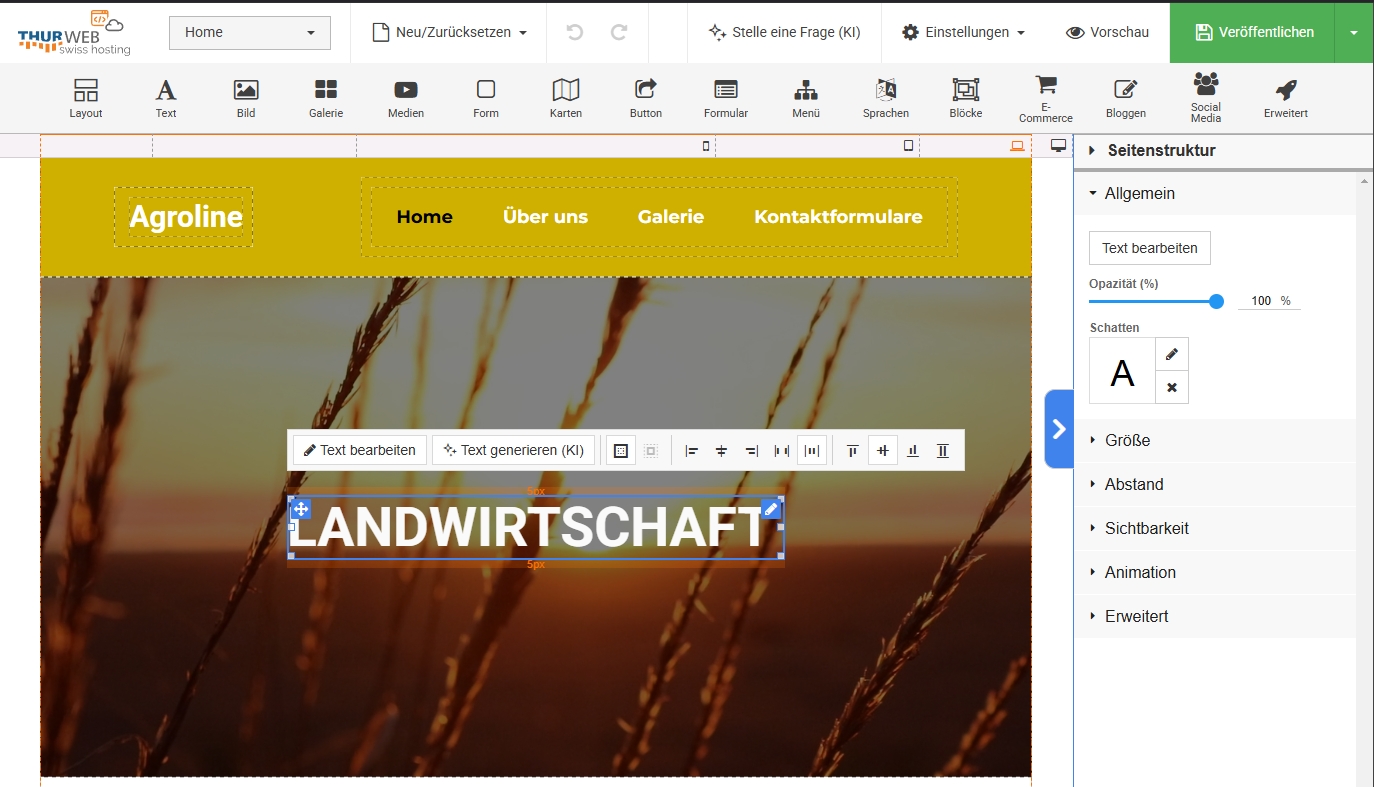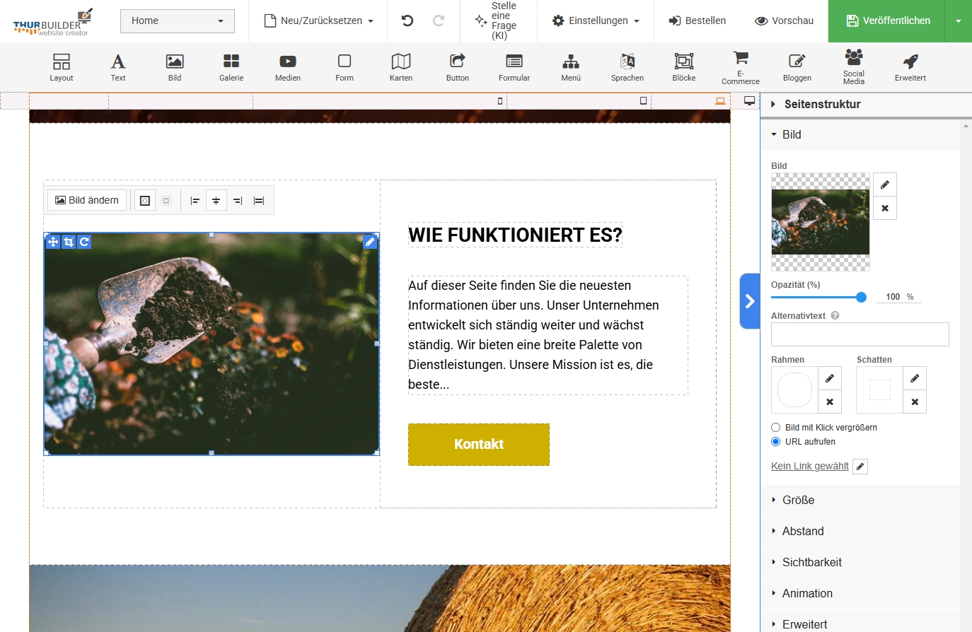 Bilder lockern die Webseite auf und sagen manchmal mehr als viele Worte. Zeigen Sie Ihre Produkte, Ihr Team oder Ihren Betrieb mit ansprechenden Bildern. Du kannst diese in verschiedensten Varianten einbinden, ob als Galerie, Slideshow oder Hintergrund.