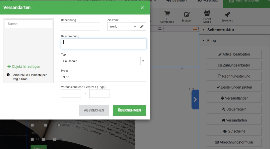 Sie können zwischen verschiedenen Zahlungsmöglichkeiten, Versandvarianten, Rechnungsstellungen, etc. wählen.