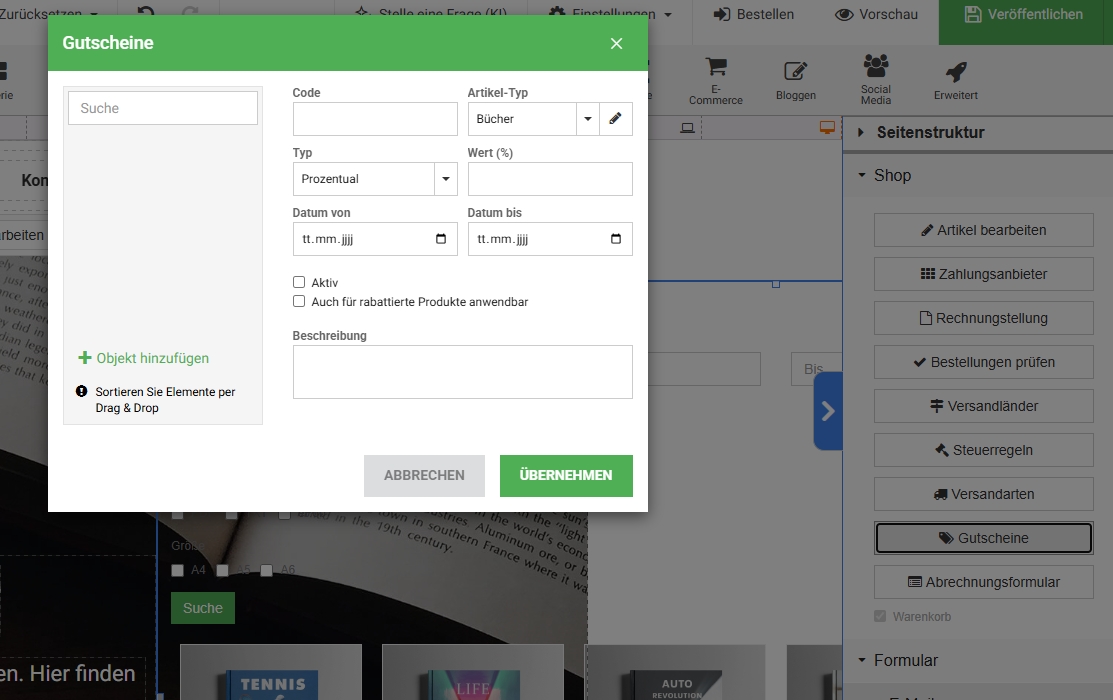 Integrieren Sie einen Onlineshop in Ihre Website und verkaufen Sie Ihre Produkte online.
