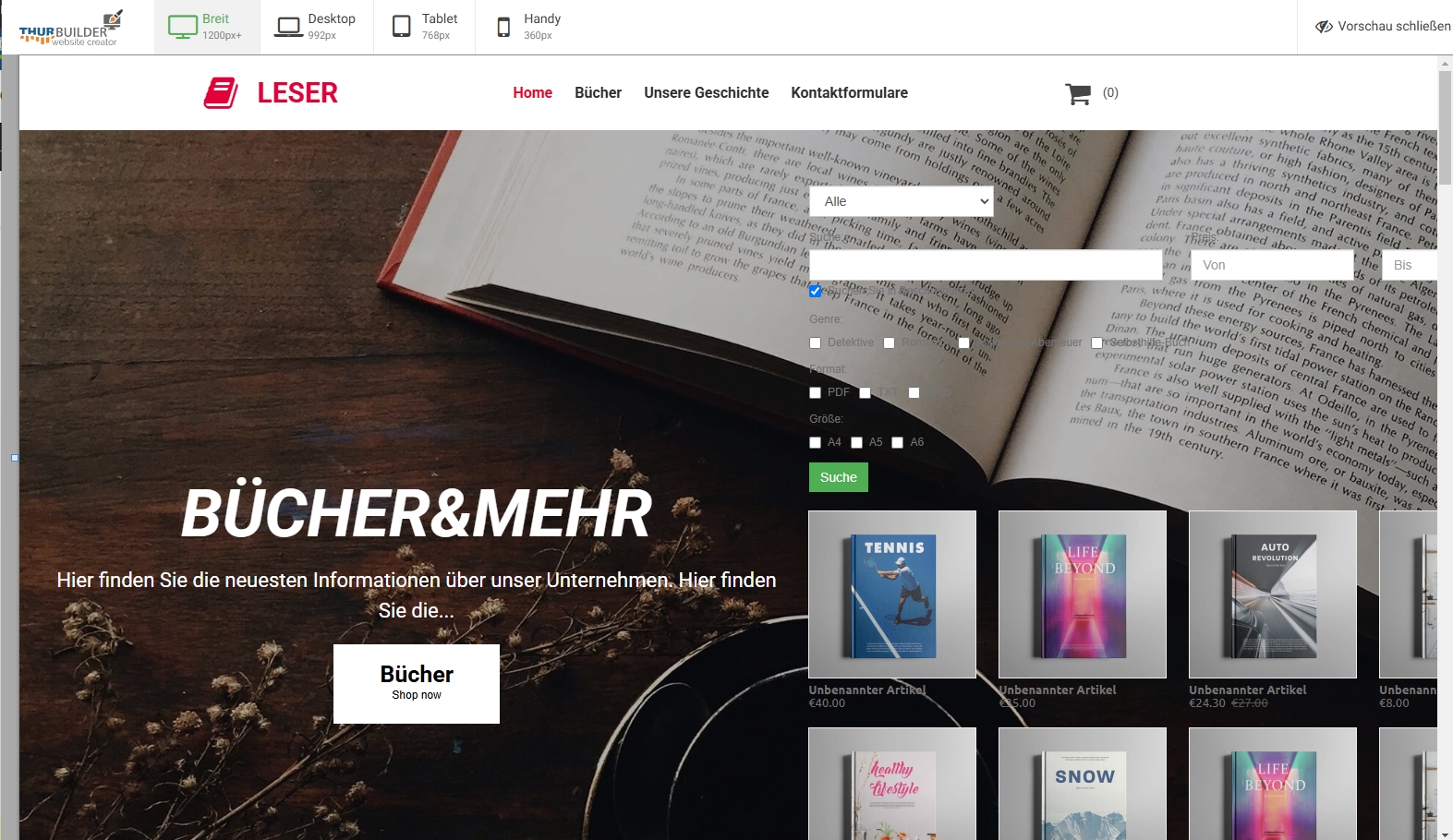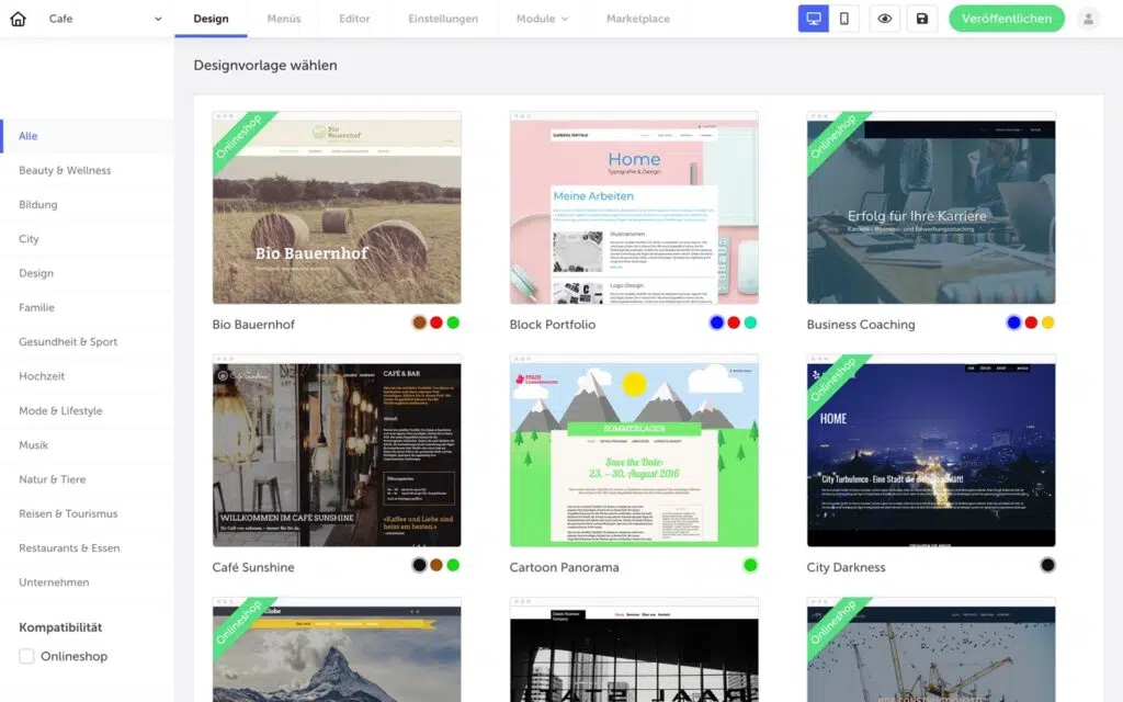 Wählen Se aus über 200 Designvorlagen und passe Farben, Schriften und Bildwelt nach Ihren Vorstellungen an. So entsteht ein ganz individuelles Meisterwerk.